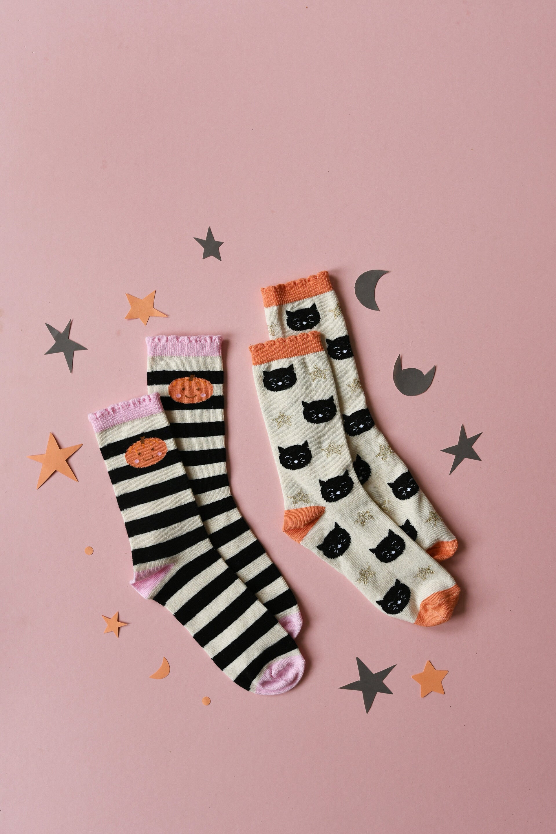 This Rockahula pack of 2 super soft socks are frightfully fun and perfect for halloween season! Featuring pumpkins and spooky stripes, they're also made with organic cotton so super soft on little toes. Match with our halloween collection for the perfect combo!