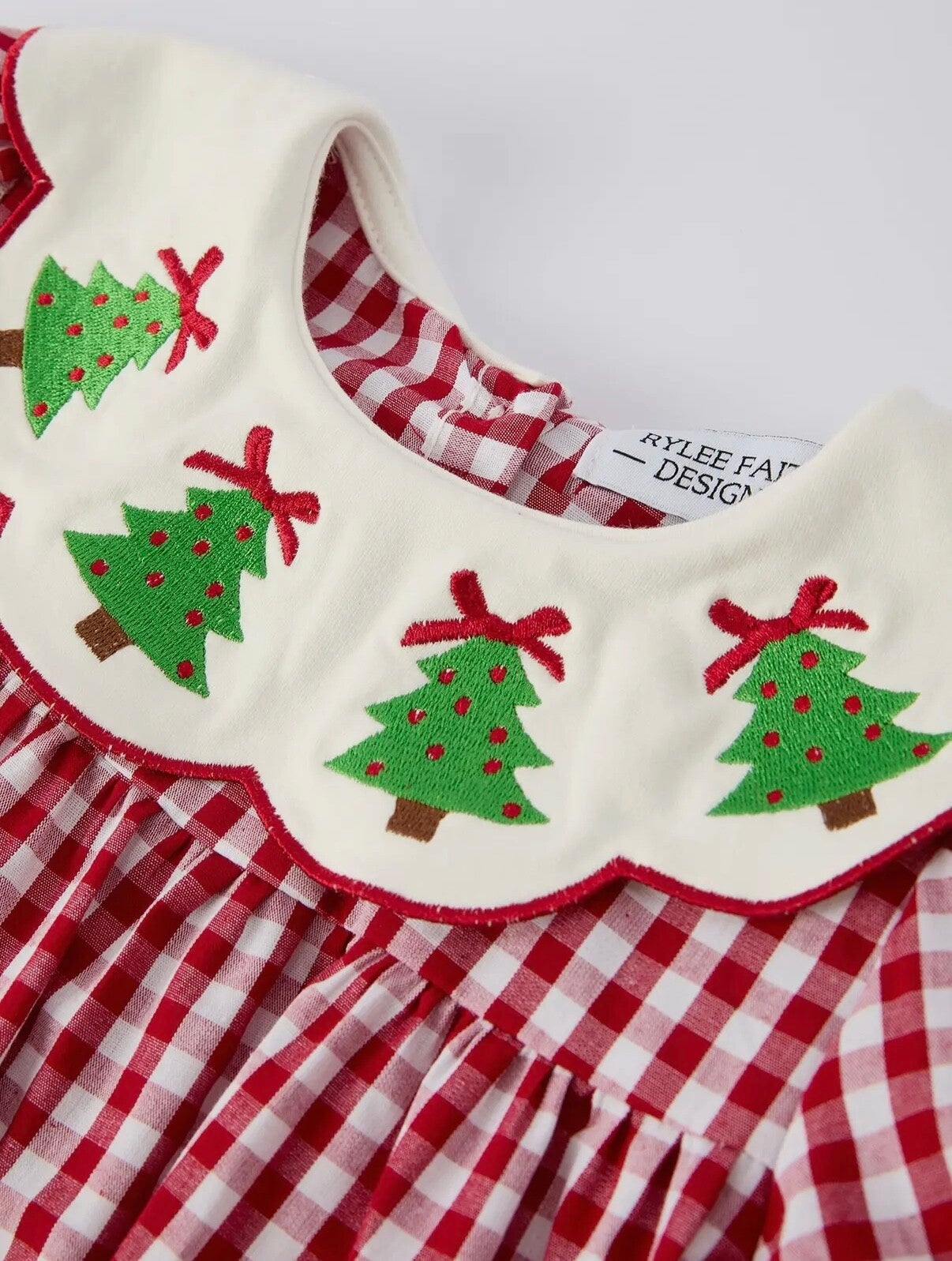 Celebrate the holiday season in style with this Christmas Embroidered Christmas Tree Collar Plaid Girls Dress. Featuring a charming embroidered Christmas tree on a festive collar and classic plaid pattern, it brings festive cheer to any occasion. Made for comfort and holiday joy, this dress makes a perfect choice for family gatherings and holiday photos. Let your little one shine bright this Christmas with a look that's both adorable and timeless.