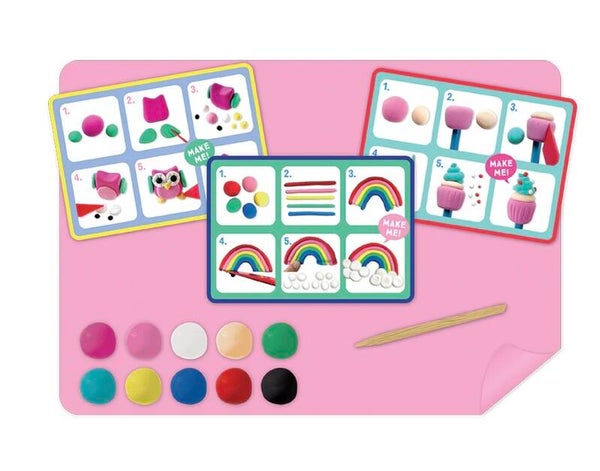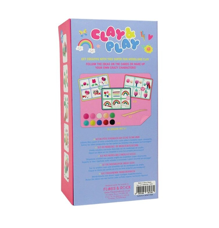 Become a master sculptor and creative genius with Clay & Play! Each set comes with 6 pots of 10 different air dry clay colours, 5 double-sided instruction cards (taking you step-by-step through the creative process), a brightly coloured silicone mat and a handy wooden stylus tool for crafting.