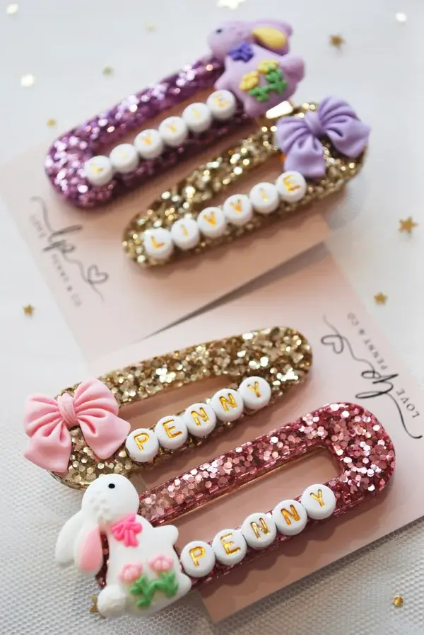 Sparkly clips fit for all bunny and Easter lovers! These sparkly beauties are handmade with so much love! They are perfect to be worn at Easter and all year round and they make the loveliest little gift.